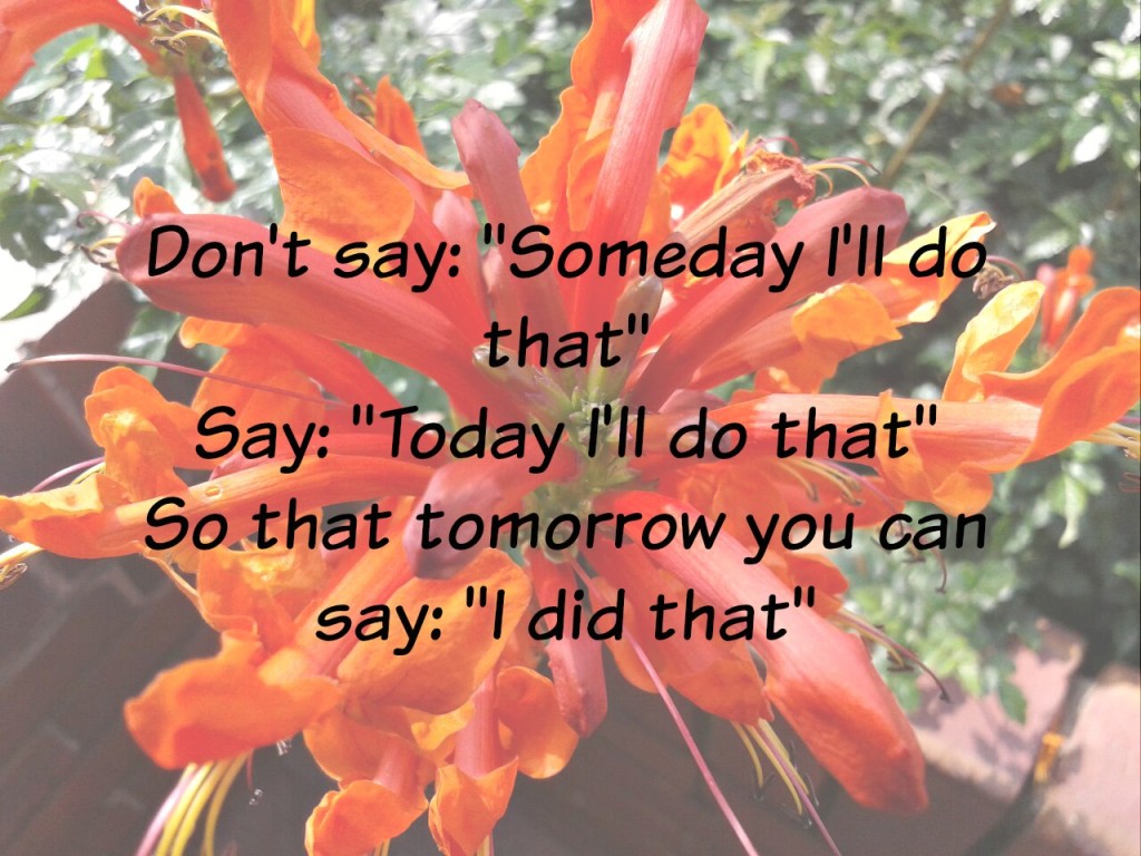 Don’t say: “Someday I’ll do that”, say: “Today I’ll do that”, so tomorrow you can say: “I did that”.