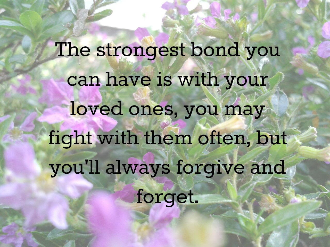 The strongest bond you can have is with your loved ones, you may fight with them often, but you’ll always forgive and forget.